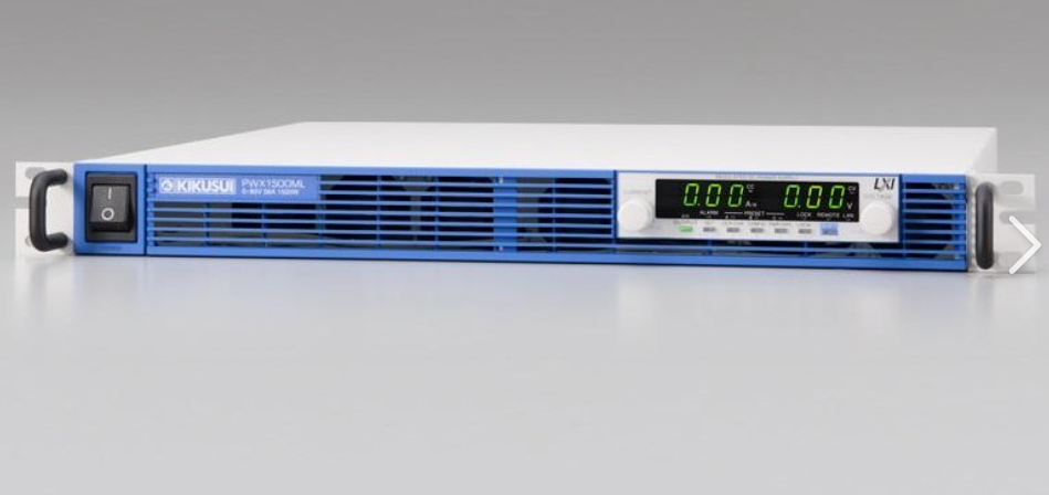 | PWX1500ML | 拥有3倍比的电压,电流可变范围功率形电源,高1U(全机架宽度的大小),适合机架式的薄型,轻量的设计,额定输出:1500W,0-80V/0-56A,搭载有功率因数改善电路: 0.99(TYP值/100V输入时)、0.97(TYP值/200V输入时),标配LAN/USB/RS-232C通信接口(LAN可支持LXI) |