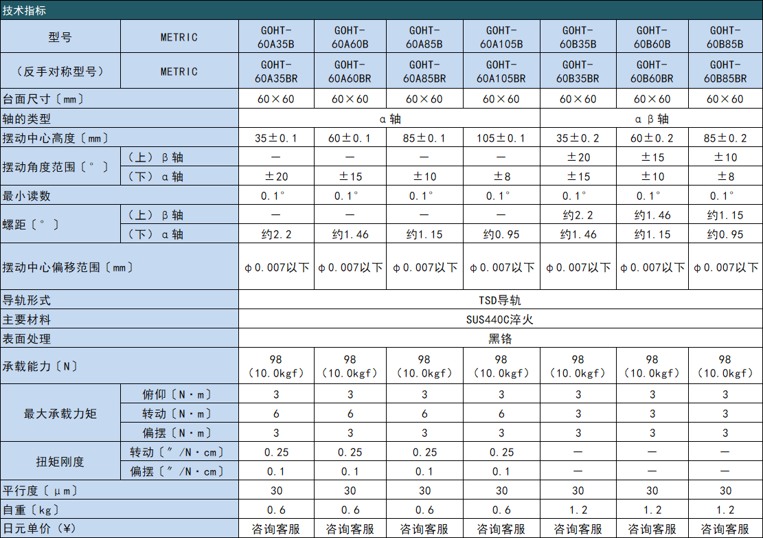 2、采用导轨一体型的结构,具有摆动中心误差仅为φ0.007mm的高精度。