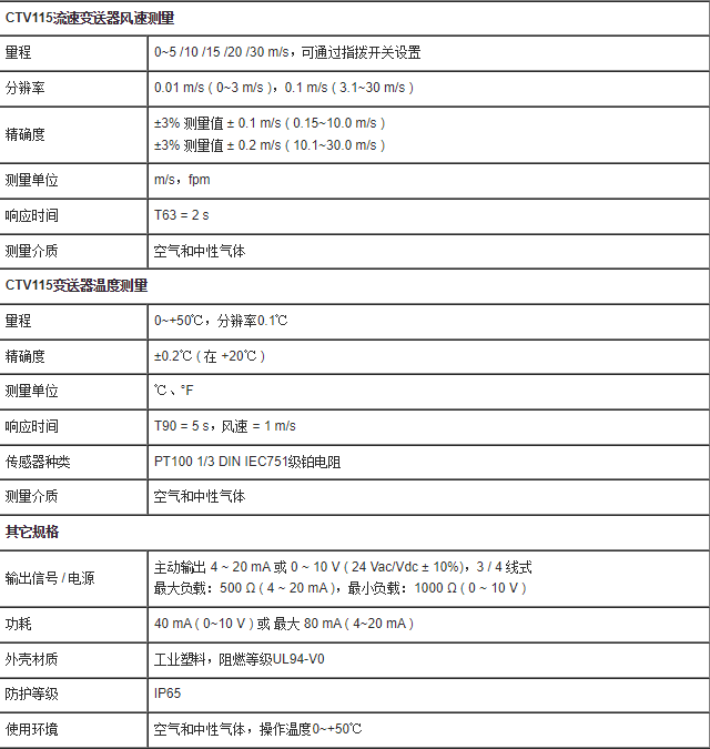 量程0~100 %RH和 0~50℃墙面型壁挂式温湿度变送器,工业塑料,100mm探头量程0~100 %RH和-20~+80℃分体型,工业塑料材质,探头长度150mm或300mm量程0~100 %RH和-40~+180℃分体型,不锈钢材质,探头长度150mm或300mm功能:相对湿度、温度、露点、混合比、湿球温度、热焓输出信号:两通道4线式0-5/10 V、0/4-20mA(择其一)电源:24 Vac/Vdc 或230 Vac
