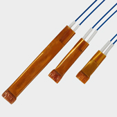 加热器由PTC元件夹着金属板,并覆盖聚酰亚胺绝缘膜。 这种自控加热器温度上升迅速,可在高温(280°C~290°C)使用。