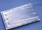 这是一种柔性加热器,加热元件夹在高导热铝箔之间。