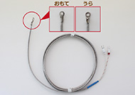 这是一种用于表面温度测量的热电偶,其芯线与玻璃编织绝缘层比两对线更圆,K热电偶的热接触点位于外部,顶部编有不锈钢,热接触点焊接于耐热压接端子上。